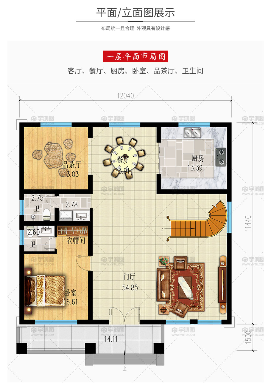 | 開間:12.04米 | 進深:12.94米 | 占地面積:137.7平方米 | 建筑面積:270.6平方米 |