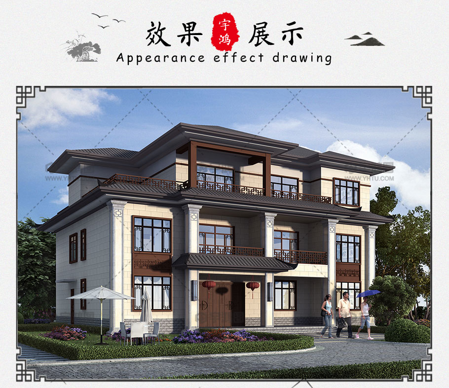經典中式農村三層40萬小別墅設計圖紙及效果圖