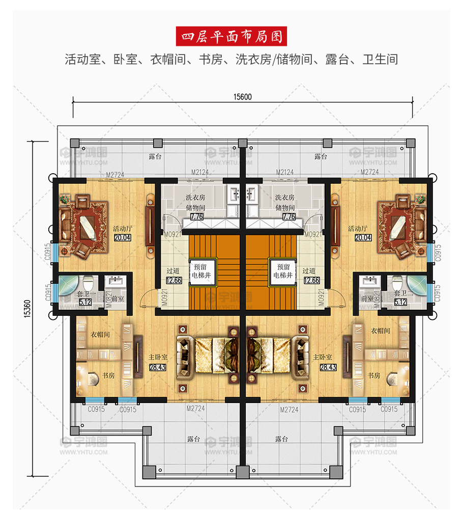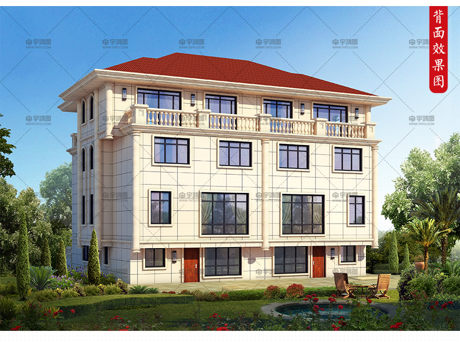 新款240平四層歐式兄弟雙拼農村別墅設計圖