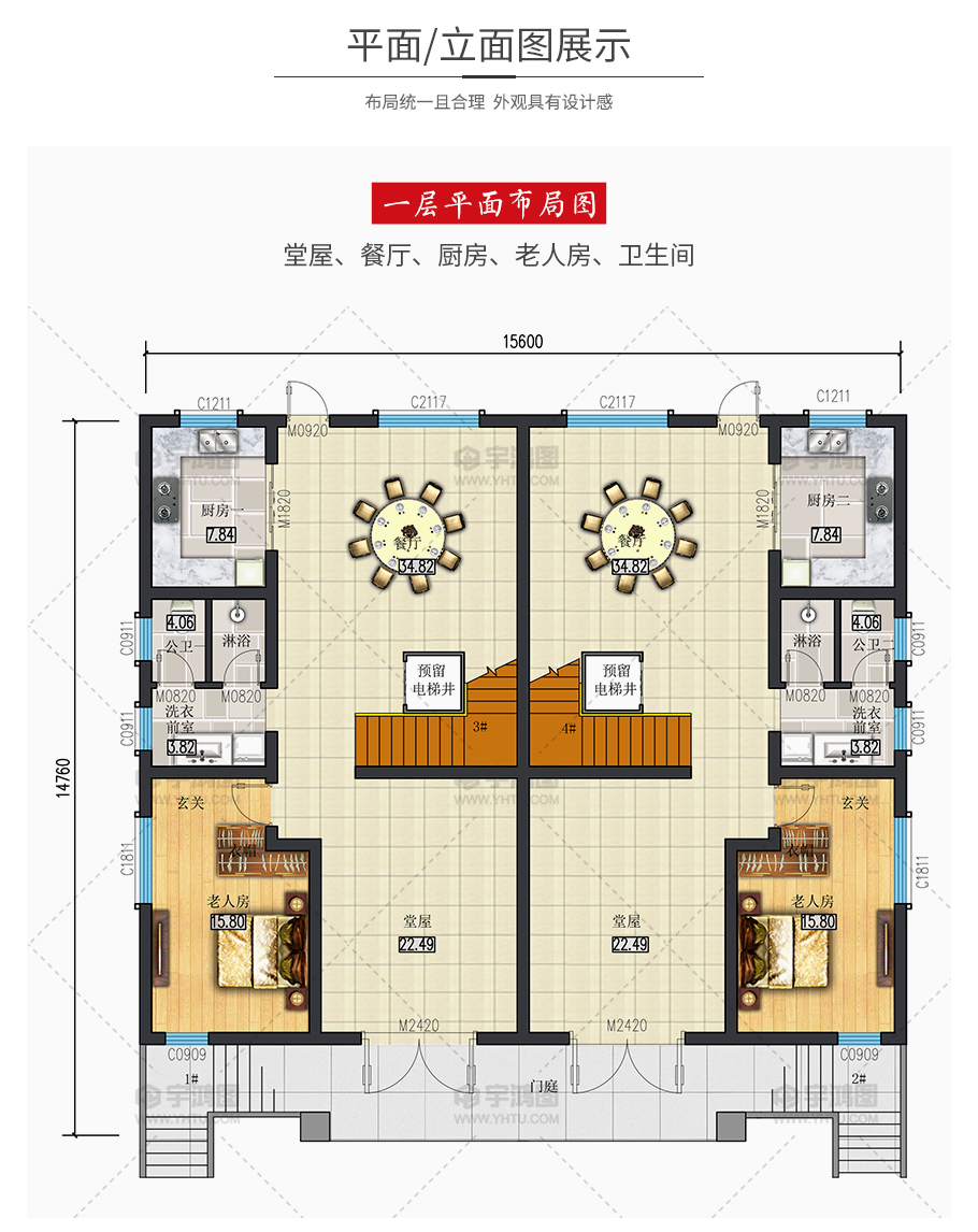 建筑立面圖:東立面圖,西立面圖,南立面圖,北立面圖,剖面圖;