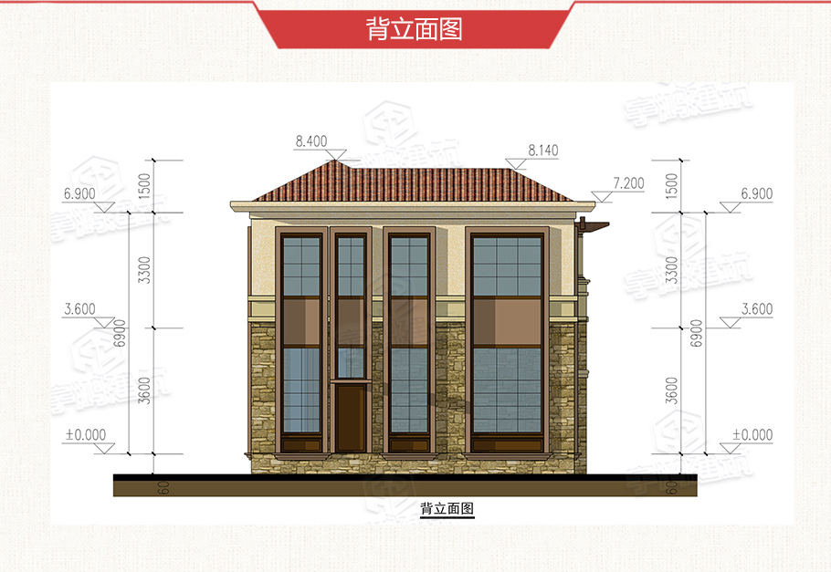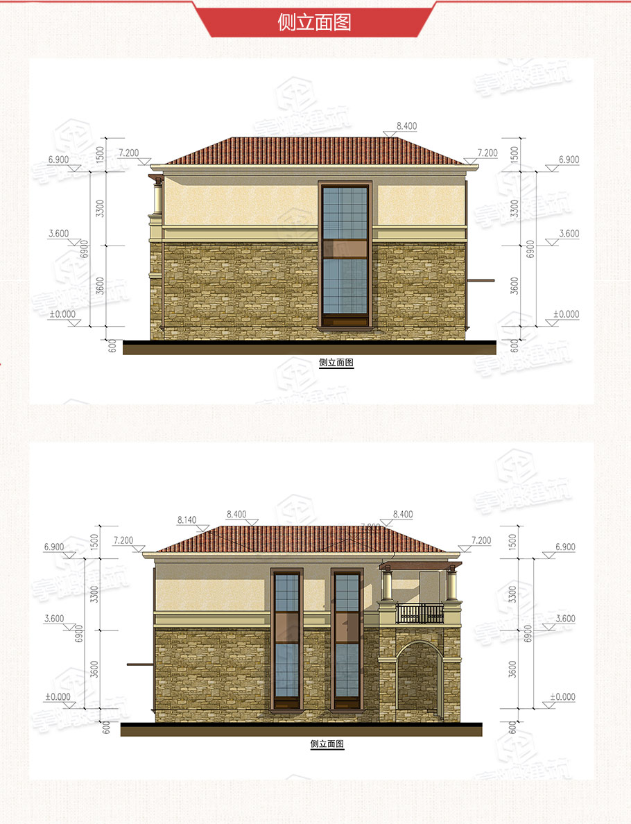 建筑立面圖:東立面圖,西立面圖,南立面圖,北立面圖,剖面圖;