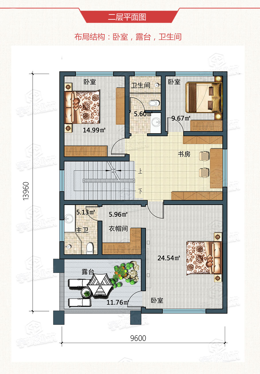 本戶型為帶露臺的西班牙風格二層小型農村別墅戶型設計圖及效果圖,外觀圖片左右對稱,好看大氣,頂層大露臺,農村富貴人家標配。大面積的落地窗設計,使得整體室內光線充足,居住體驗提升。外墻用黃色和大面積文化石搭配,把別墅裝飾得精致舒適,營造出歲月靜好、時光安然的美好。