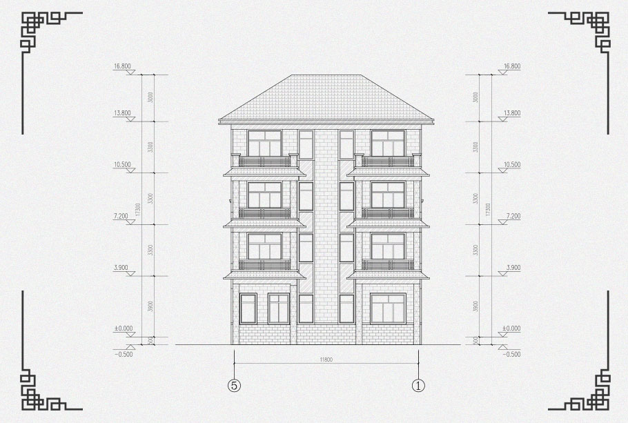 建筑立面圖:東立面圖,西立面圖,南立面圖,北立面圖,剖面圖;