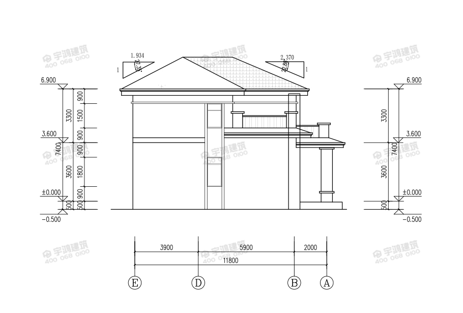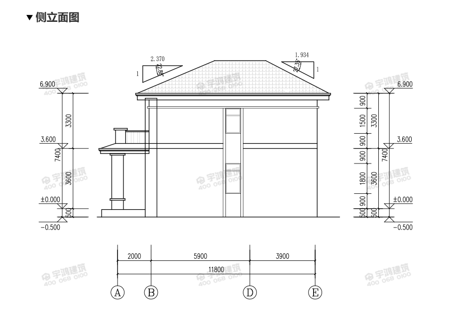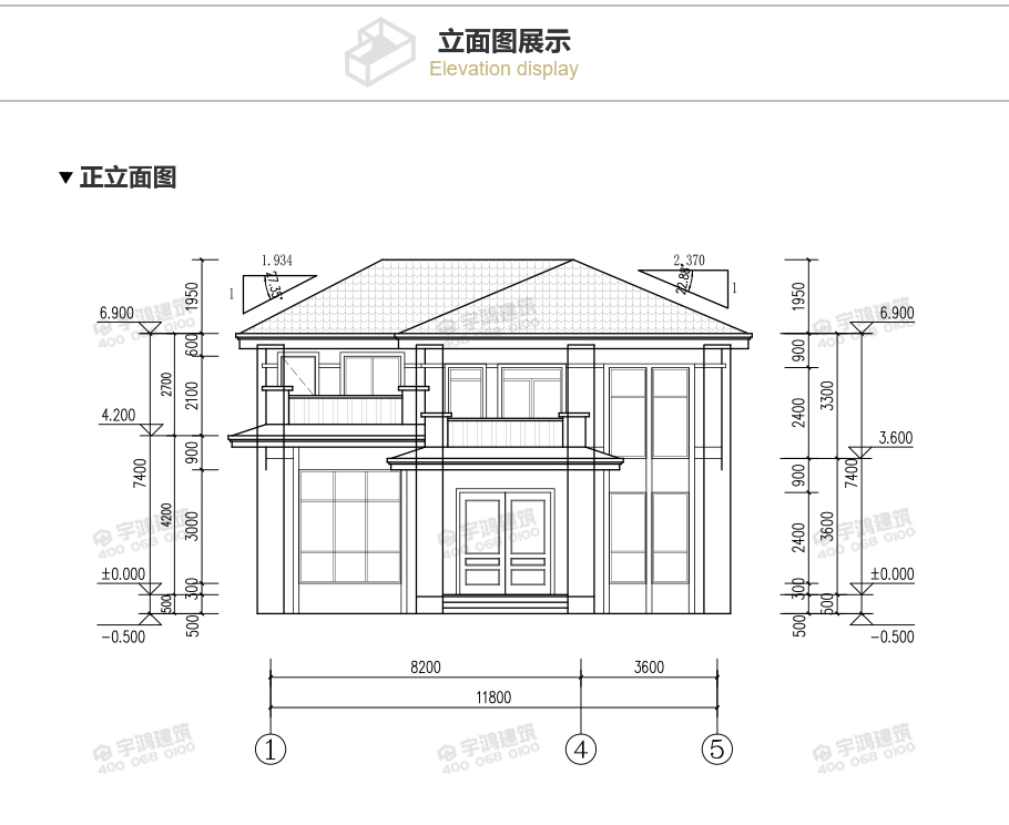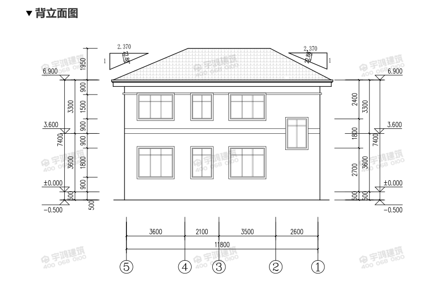 建筑立面圖:東立面圖,西立面圖,南立面圖,北立面圖,剖面圖;
