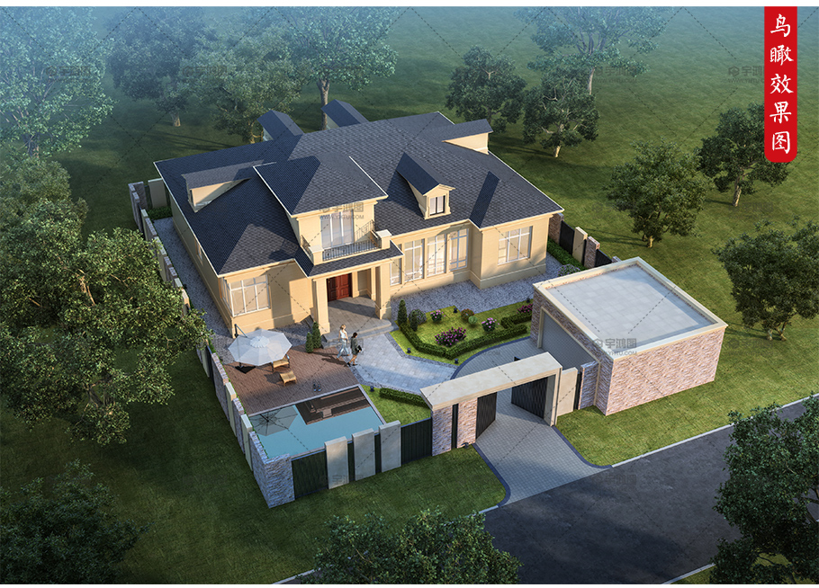 235平美式田園風格一層房屋別墅設計圖,屋頂很漂亮