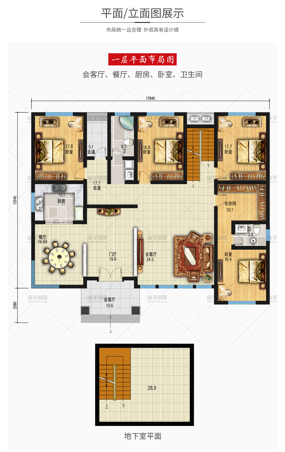 開間:17.84米 進深:15.72米 占地面積:247.7平方米 建筑面積:276.7平方米