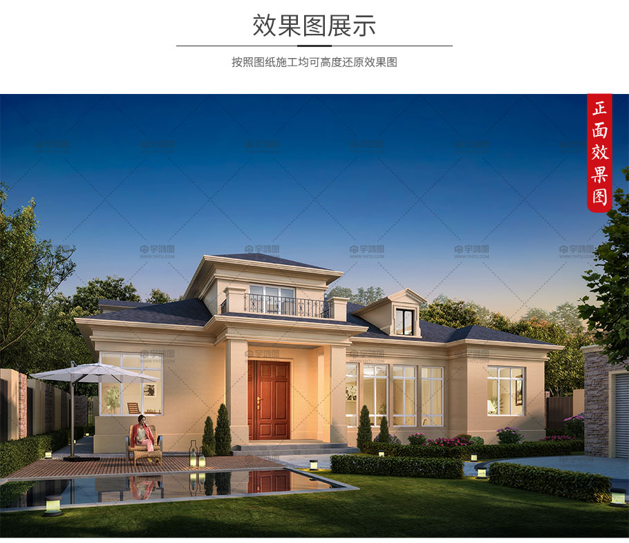 風格:美式 層數:一層 結構形式:磚混結構 圖紙編號:YH-A-1010