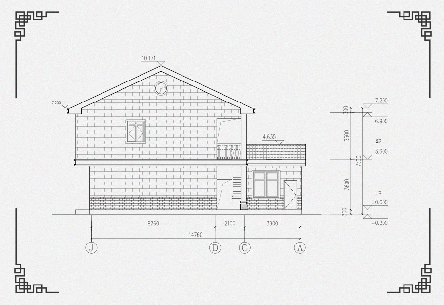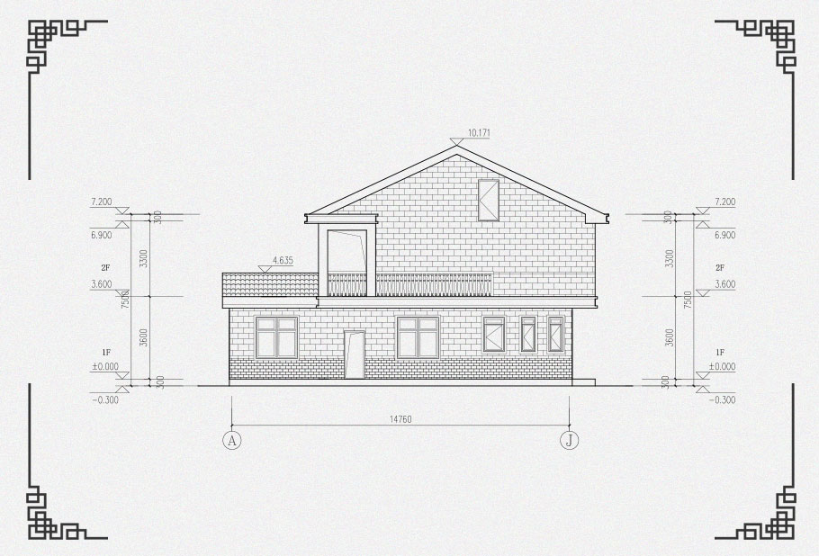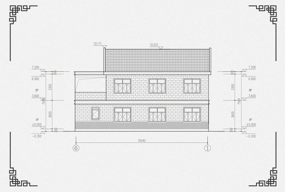 建筑立面圖:東立面圖,西立面圖,南立面圖,北立面圖,剖面圖;
