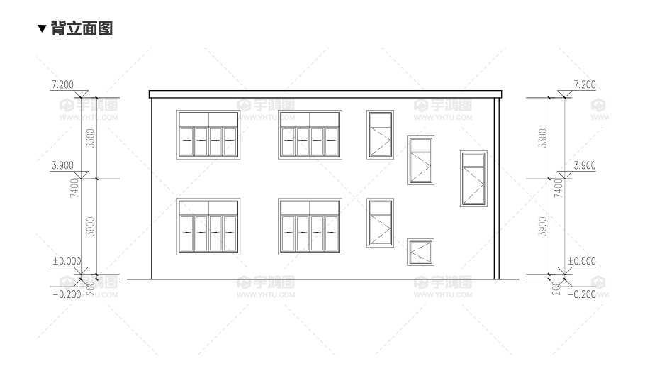 建筑立面圖:東立面圖,西立面圖,南立面圖,北立面圖,剖面圖;