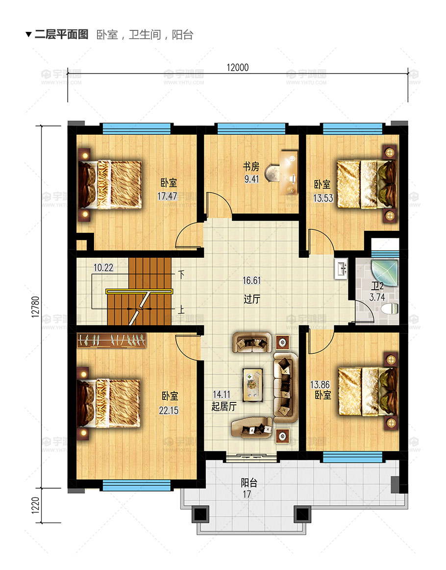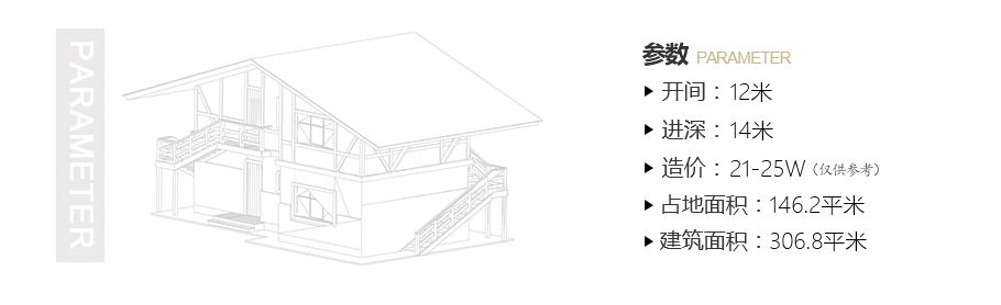 | 開間:12米 | 進深:14米 | 占地面積:146.2平方米 | 建筑面積:306.8平方米 |