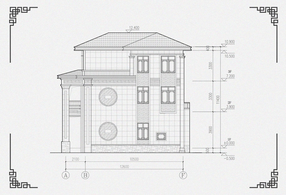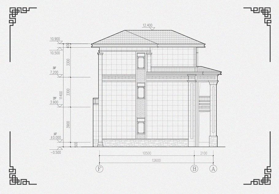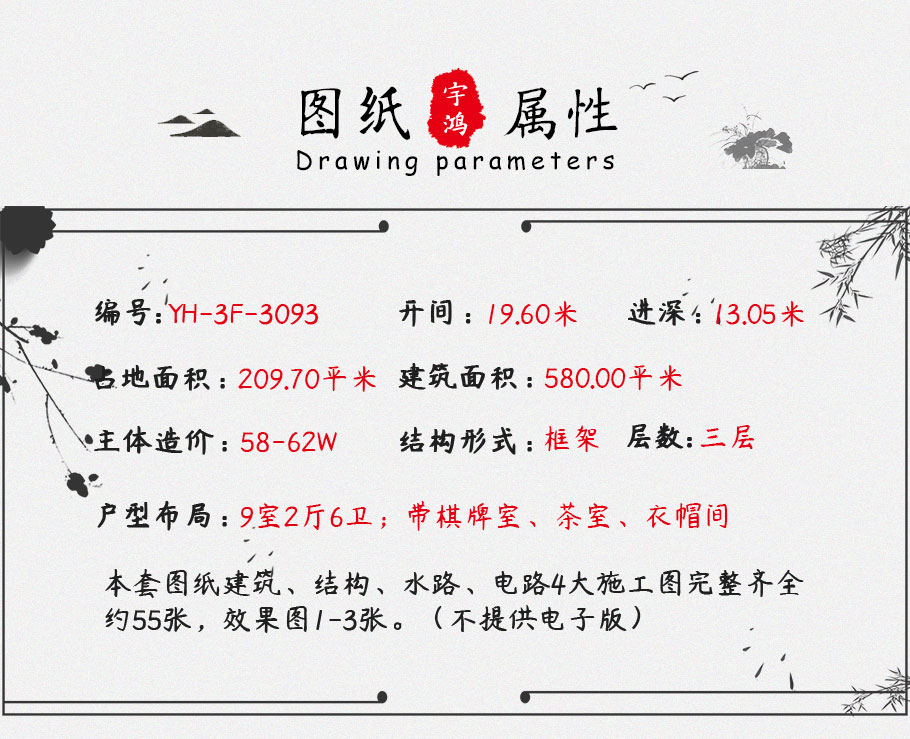 | 風格:中式 | 層數:三層 | 結構形式:框架結構 | 圖紙編號:YH-A-3093 |