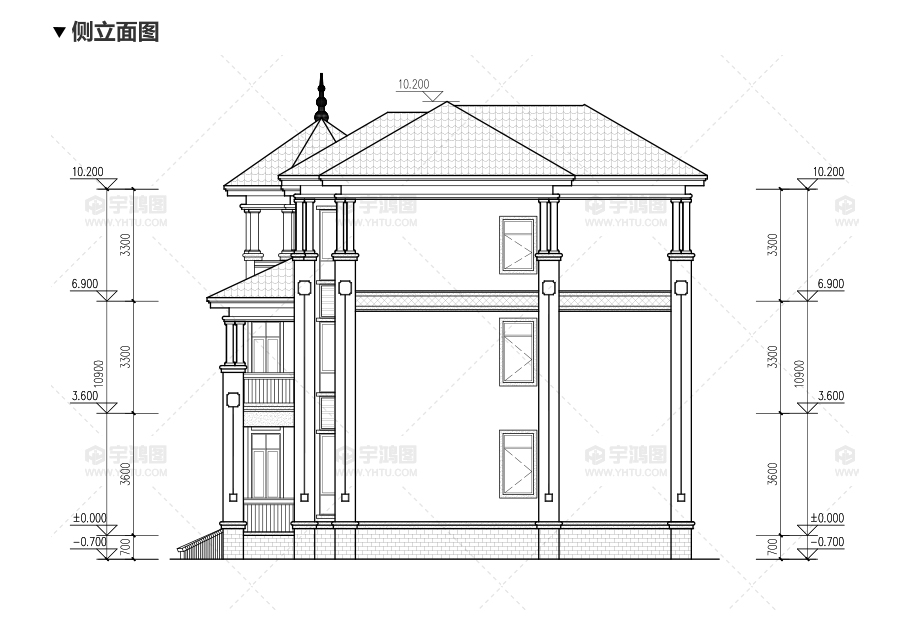 | 風格:歐式 | 層數:三層 | 結構形式:框架結構 | 圖紙編號:YH-A-3094 |