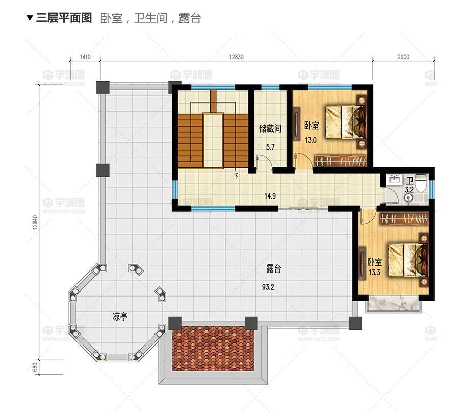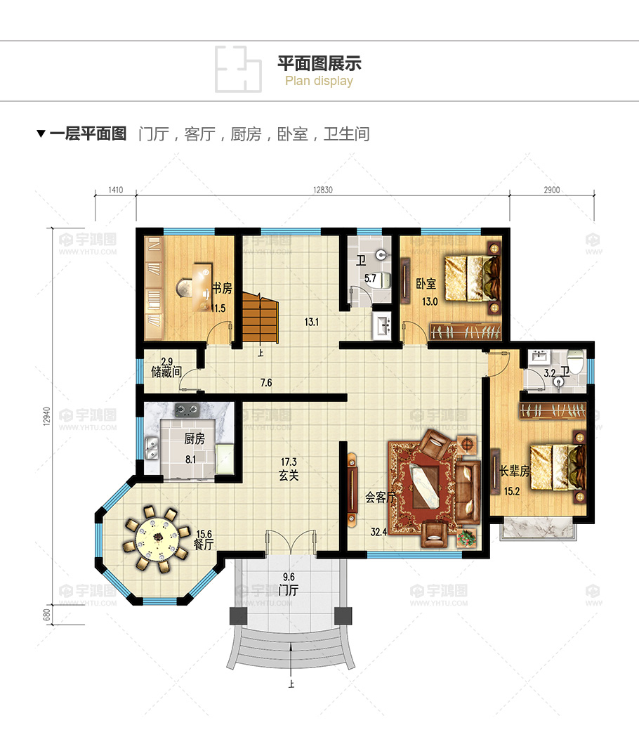 | 開間:17.14米 | 進深:13.62米 | 占地面積:171.3平方米 | 建筑面積:429.4平方米 |
