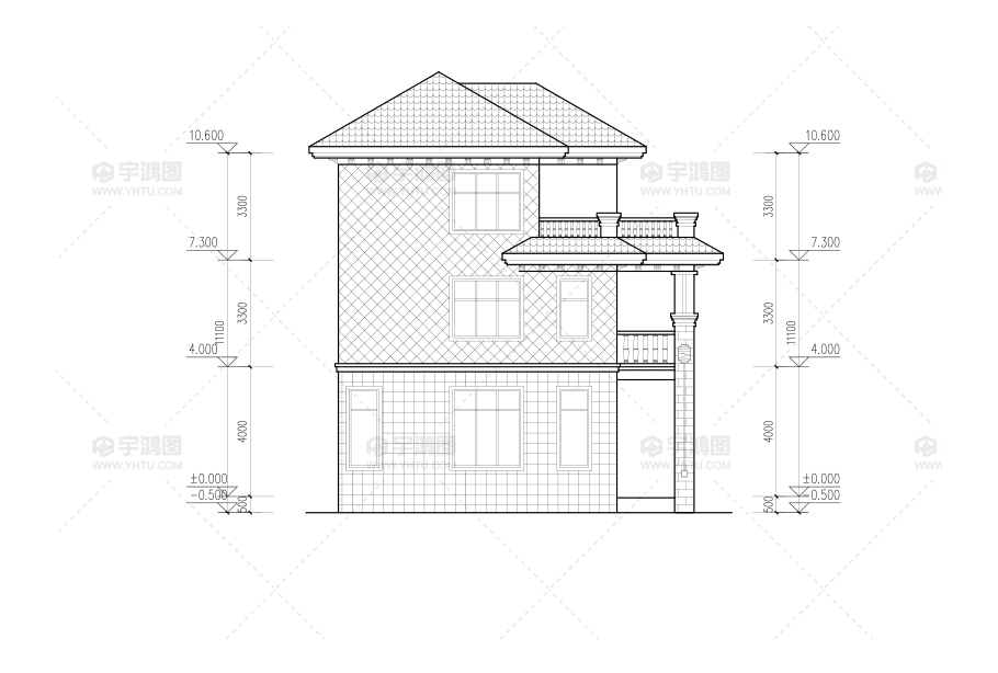 建筑立面圖:東立面圖,西立面圖,南立面圖,北立面圖,剖面圖;