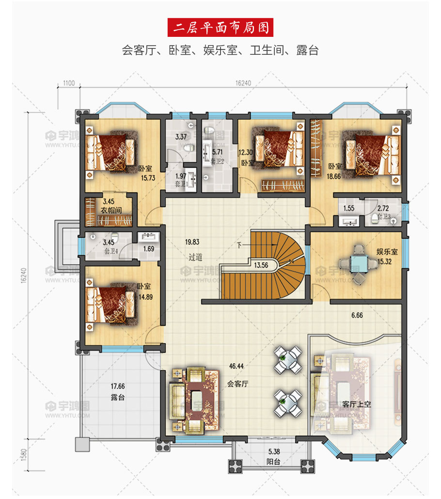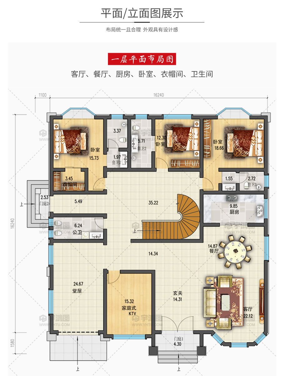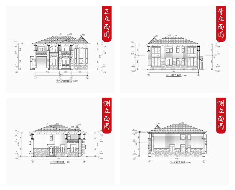 建筑立面圖:東立面圖,西立面圖,南立面圖,北立面圖,剖面圖;