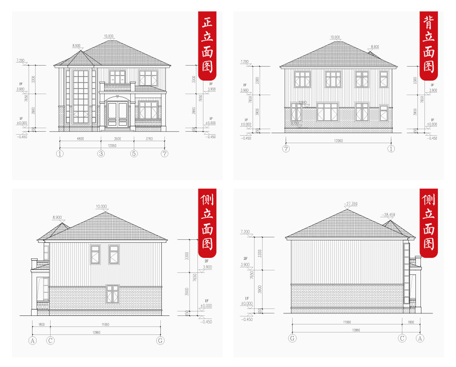 | 建筑圖: | 建筑平面圖:一層平面圖,二層平面圖; 建筑立面圖:東立面圖,西立面圖,南立面圖,北立面圖,剖面圖; 大樣圖:樓梯詳圖,細部大樣,門窗大樣 |