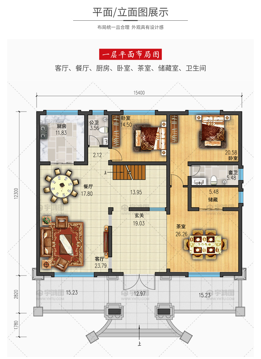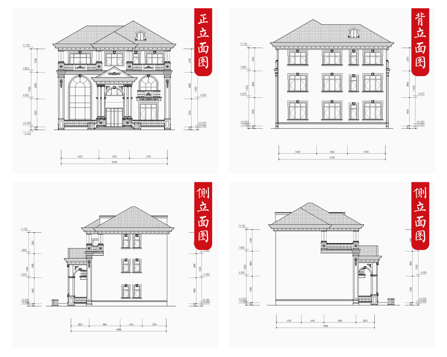 建筑立面圖:東立面圖,西立面圖,南立面圖,北立面圖,剖面圖;