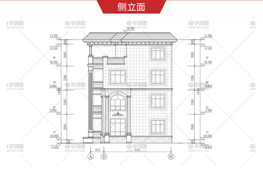 | 風格:歐式 | 層數:四層 | 結構形式:框架結構 | 圖紙編號:YH-A-4018 |