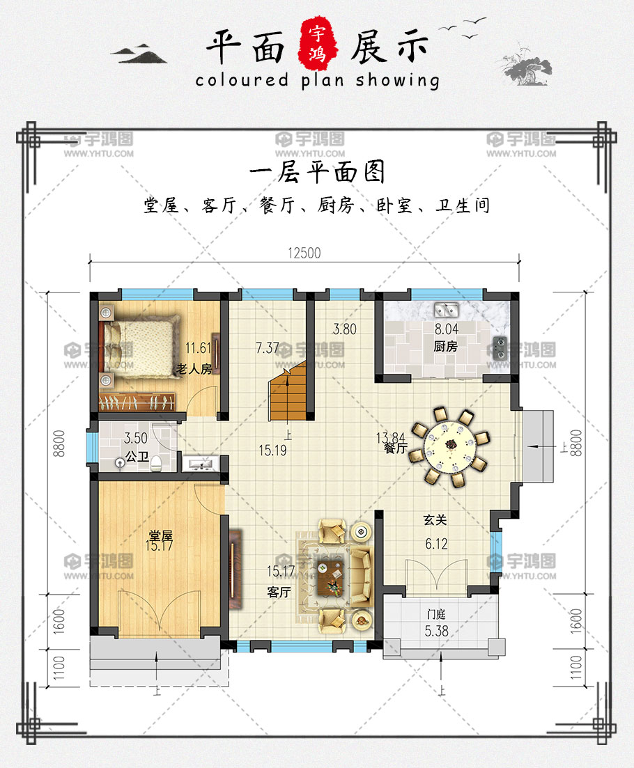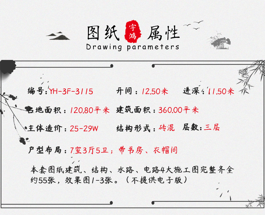 | 風格:中式 | 層數:三層 | 結構形式:磚混結構 | 圖紙編號:YH-A-3115 |