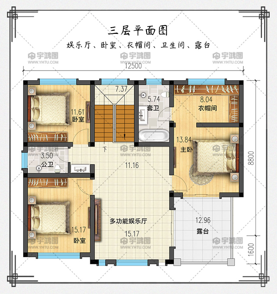 | 開間:12.5米 | 進深:11.5米 | 占地面積:120.8平方米 | 建筑面積:360平方米 |