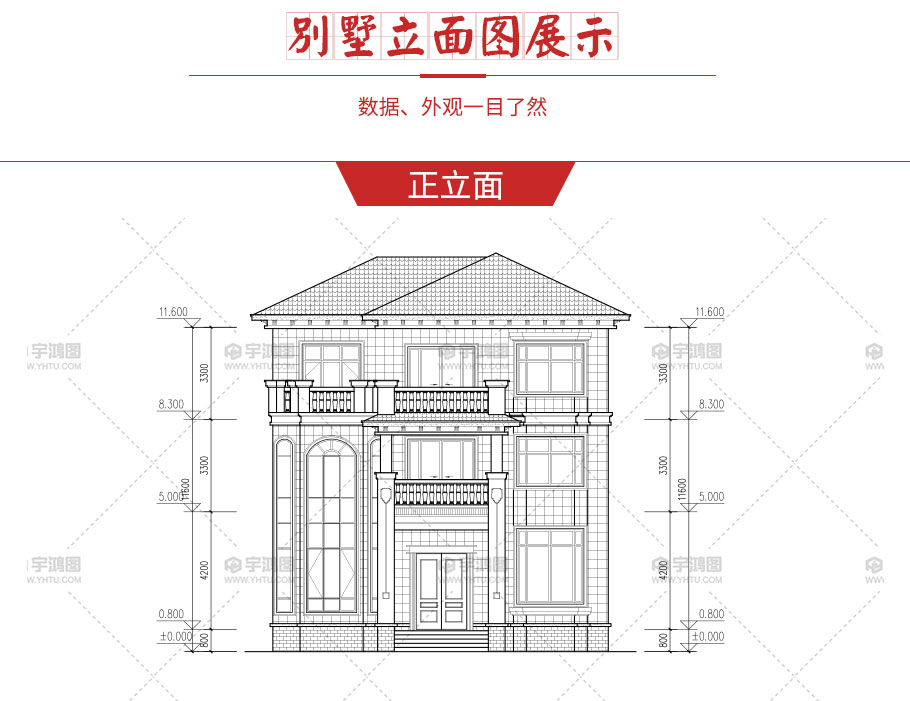 建筑立面圖:東立面圖,西立面圖,南立面圖,北立面圖,剖面圖;