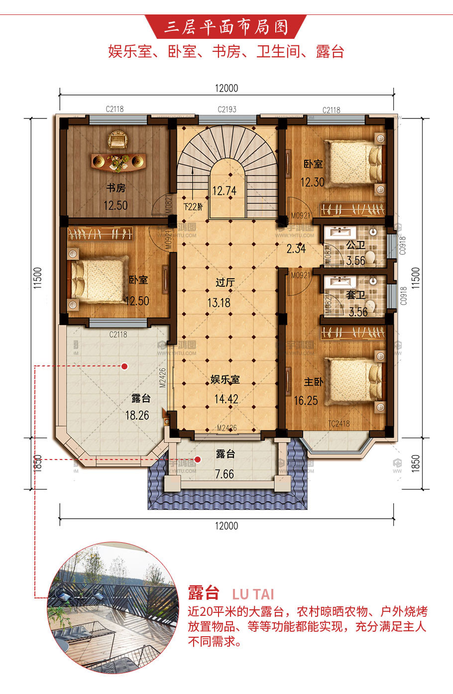 建筑平面圖:一層平面圖,二層平面圖,三層平面圖;