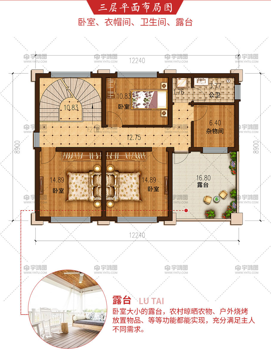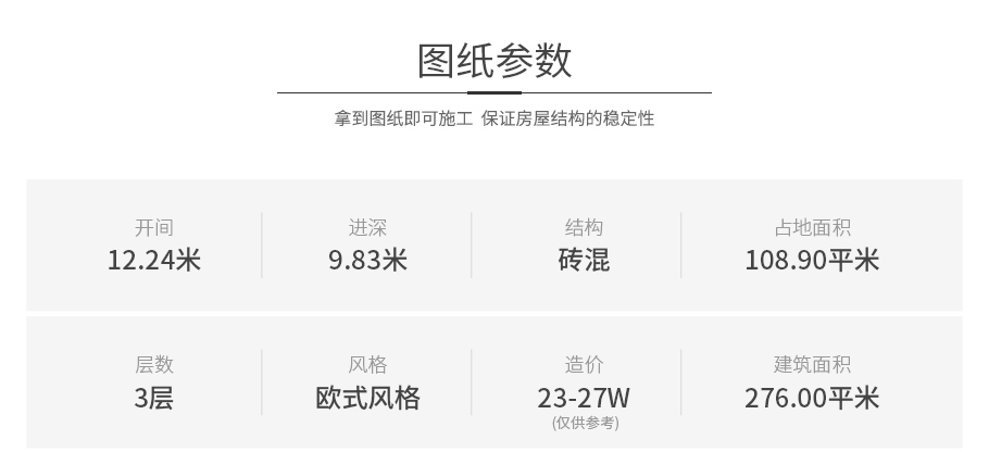 | 開間:12.24米 | 進深:9.83米 | 占地面積:108.9平方米 | 建筑面積:276平方米 |