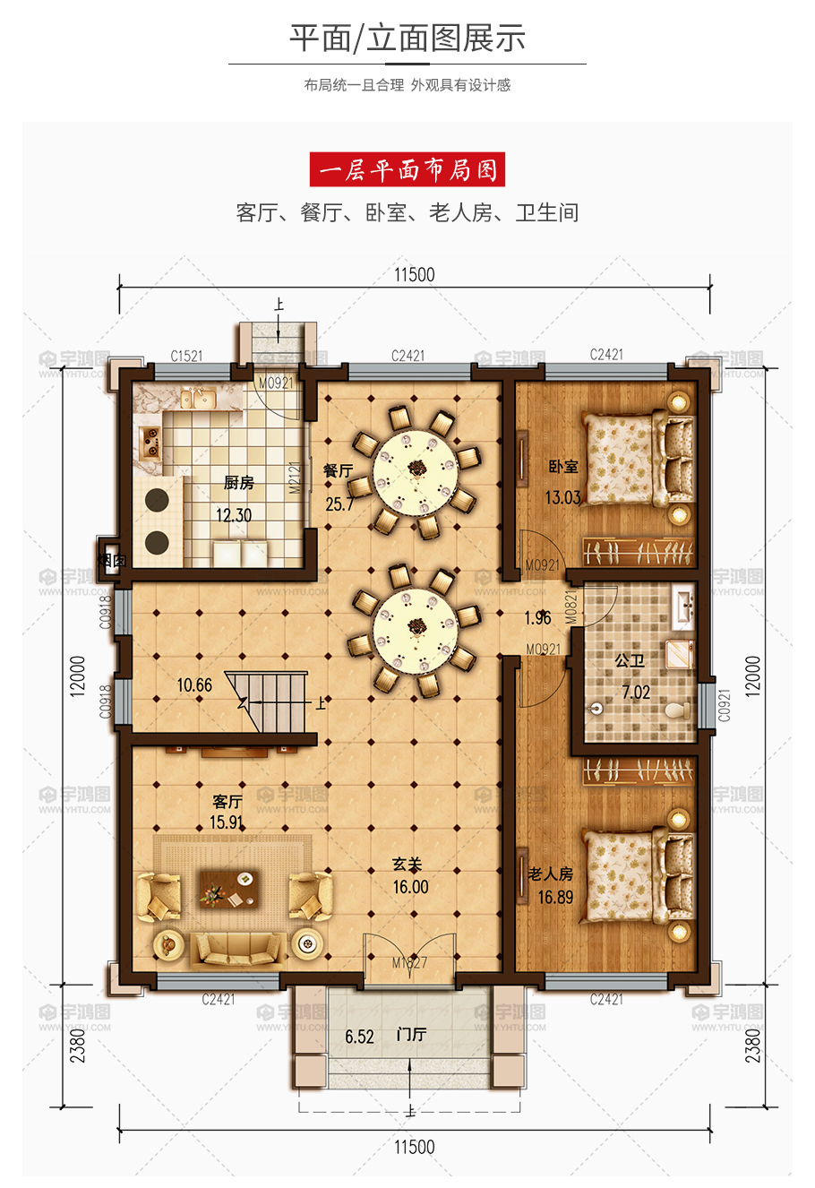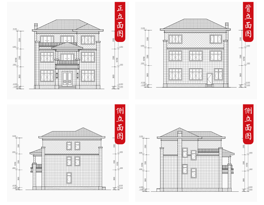 建筑立面圖:東立面圖,西立面圖,南立面圖,北立面圖,剖面圖;