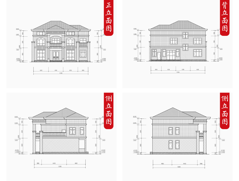 | 建筑圖: | 建筑平面圖:一層平面圖,二層平面圖; 建筑立面圖:東立面圖,西立面圖,南立面圖,北立面圖,剖面圖; 大樣圖:樓梯詳圖,細部大樣,門窗大樣 |