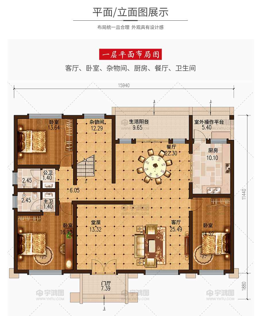 | 開間:15.94米 | 進深:13.32米 | 占地面積:182.4平方米 | 建筑面積:511平方米 |