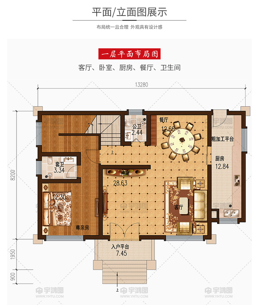 | 開間:13.28米 | 進深:11.05米 | 占地面積:106.5平方米 | 建筑面積:398.6平方米 |