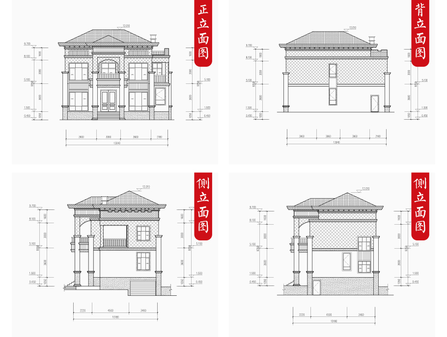 | 建筑圖: | 建筑平面圖:一層平面圖,二層平面圖; 建筑立面圖:東立面圖,西立面圖,南立面圖,北立面圖,剖面圖; 大樣圖:樓梯詳圖,細部大樣,門窗大樣 |