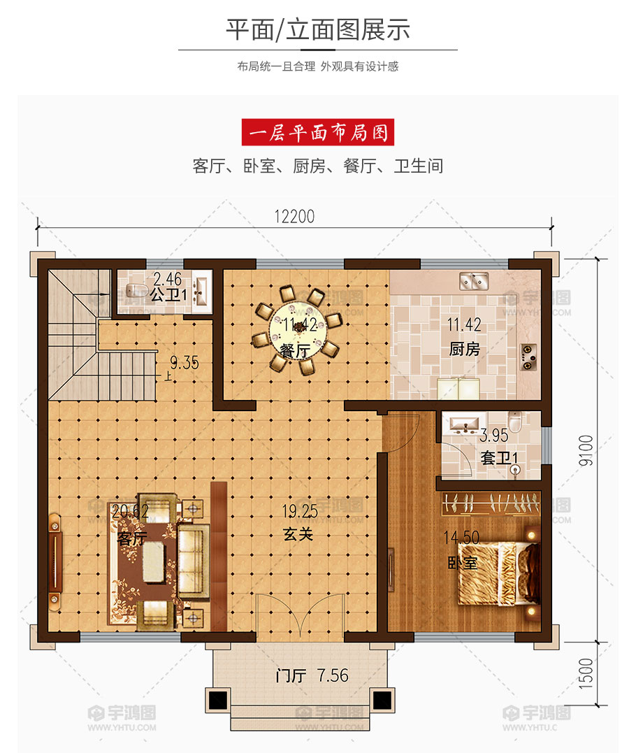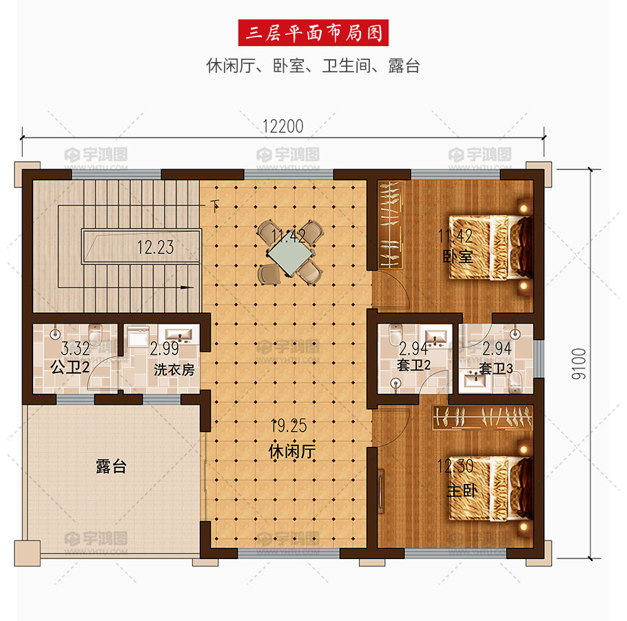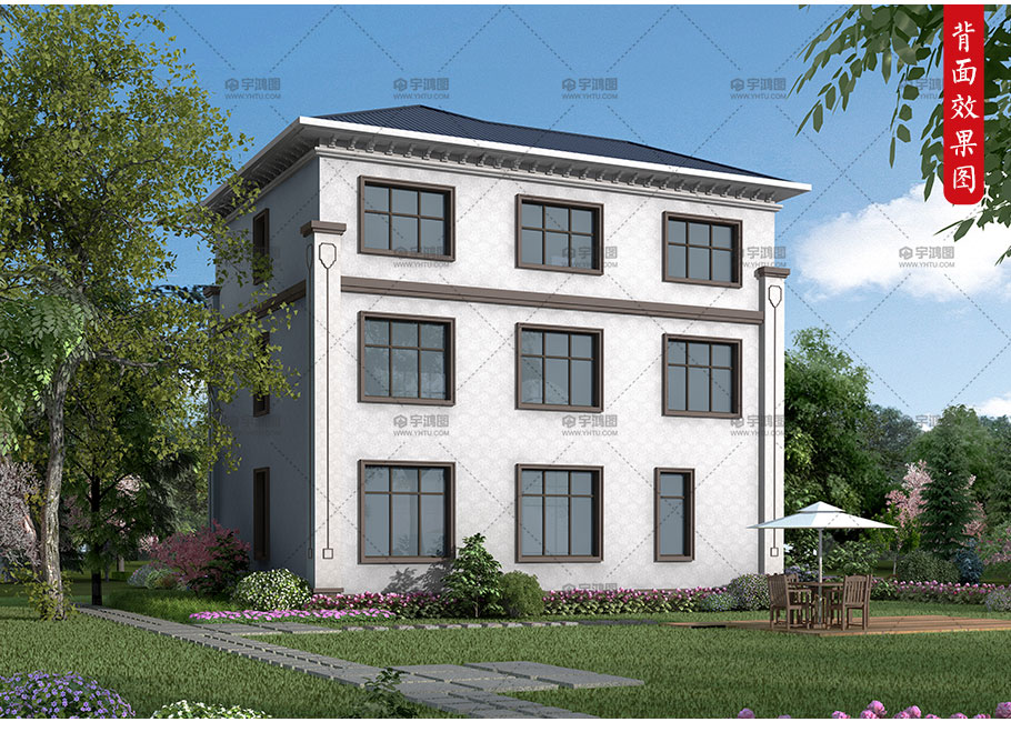 成品圖紙>110平框架結(jié)構(gòu)帶復(fù)式客廳別墅設(shè)計(jì)效果圖