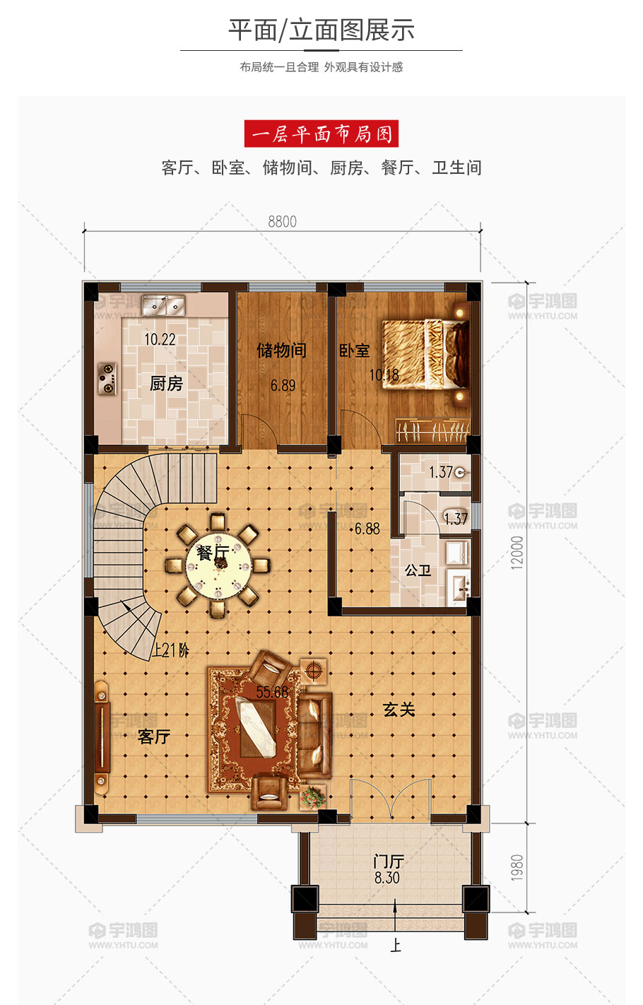 | 開間:8.8米 | 進深:13.98米 | 占地面積:105.6平方米 | 建筑面積:279平方米 |