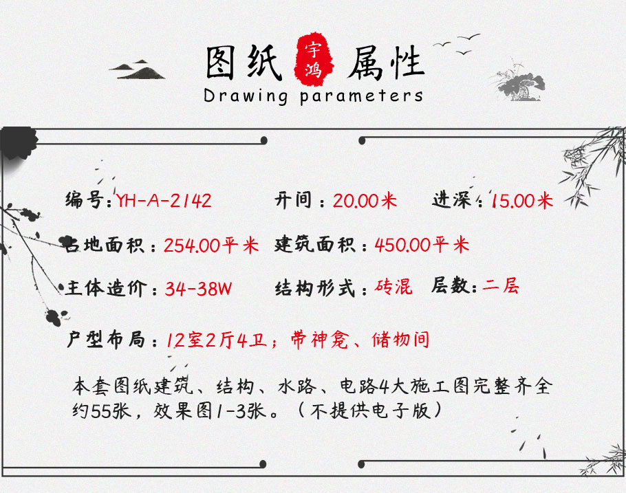 250平兩層中式別墅設(shè)計圖紙