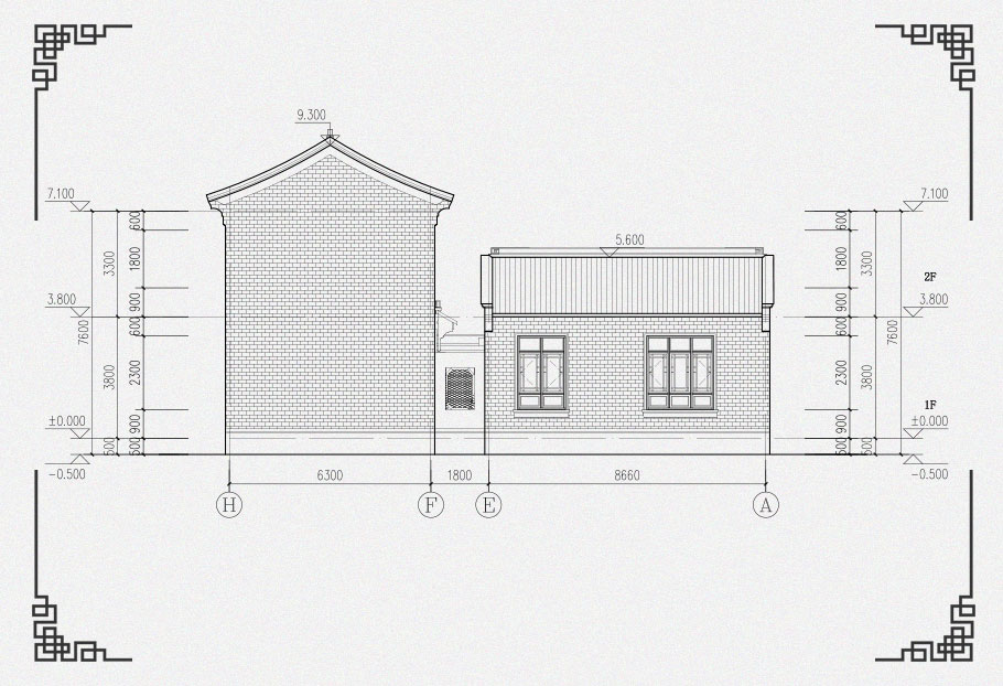 建筑立面圖:東立面圖,西立面圖,南立面圖,北立面圖,剖面圖;