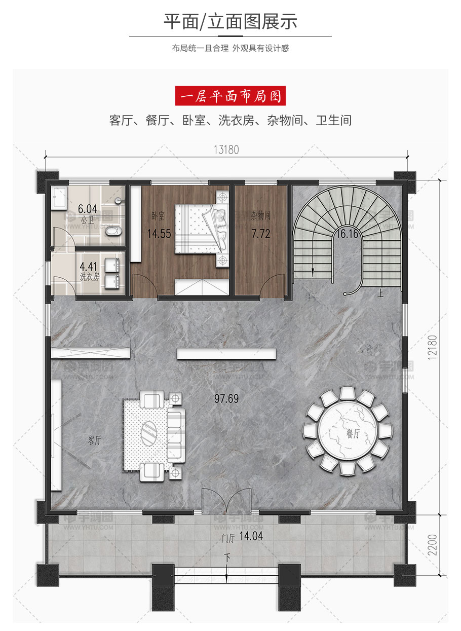 建筑平面圖:一層平面圖,二層平面圖,三層平面圖,四層平面圖;