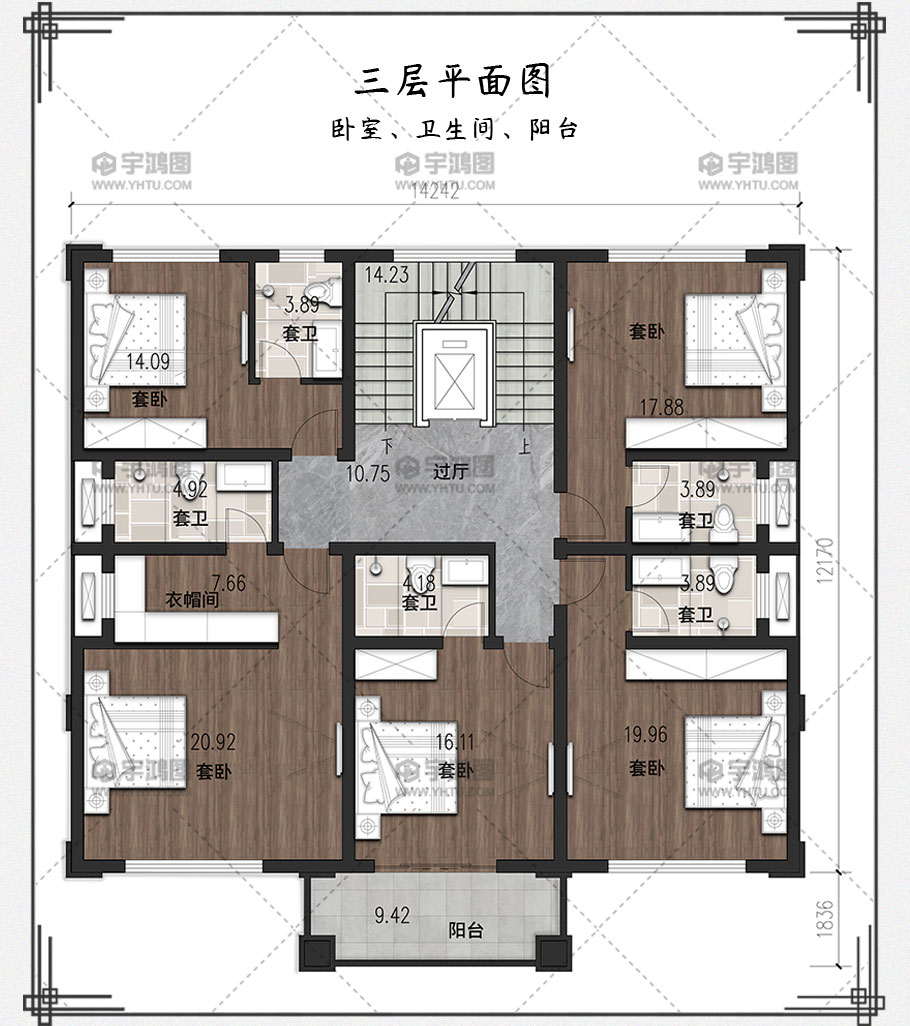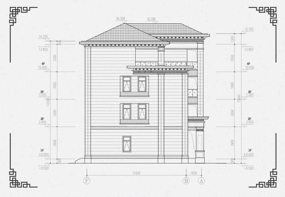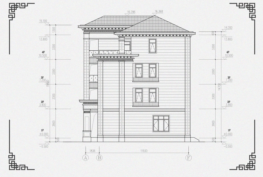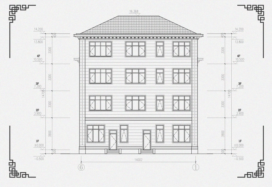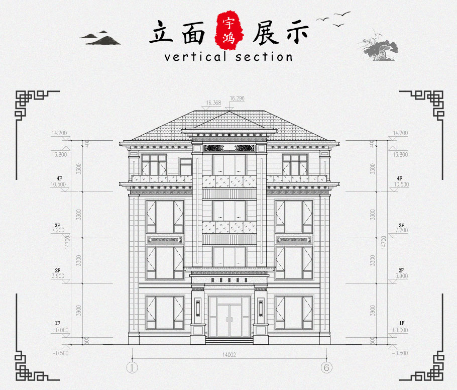 建筑立面圖:東立面圖,西立面圖,南立面圖,北立面圖,剖面圖;