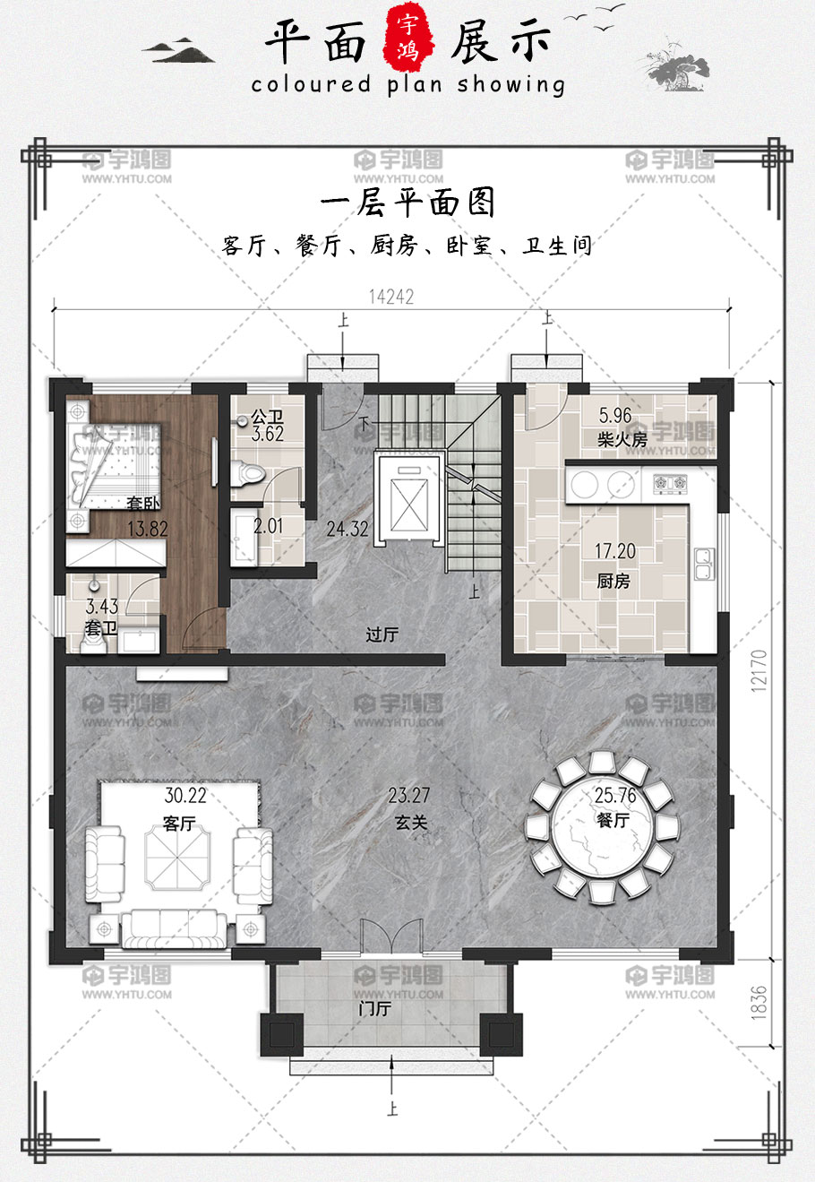 建筑平面圖:一層平面圖,二層平面圖,三層平面圖,四層平面圖;