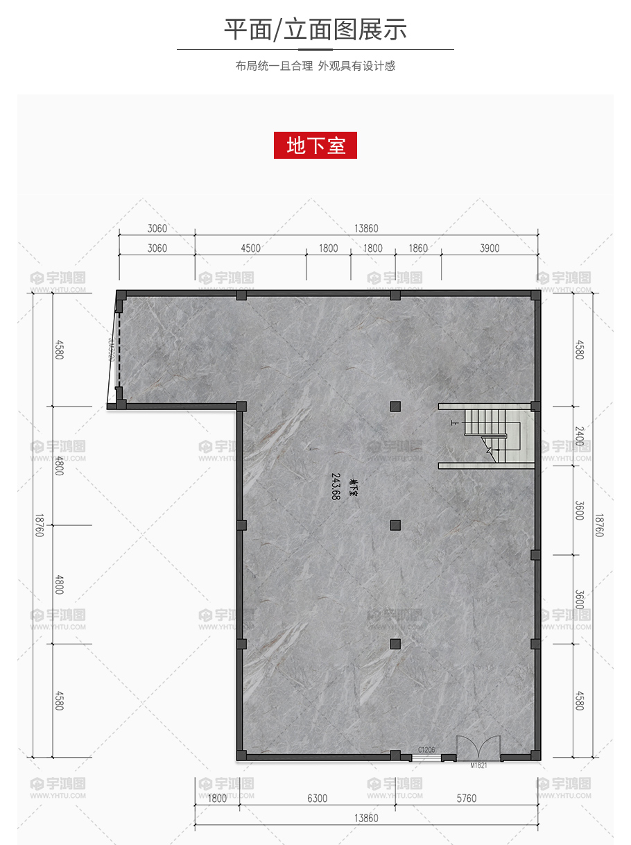 | 開間:18.76米 | 進深:13.86米 | 占地面積:250.8平方米 | 建筑面積:575.5平方米 |