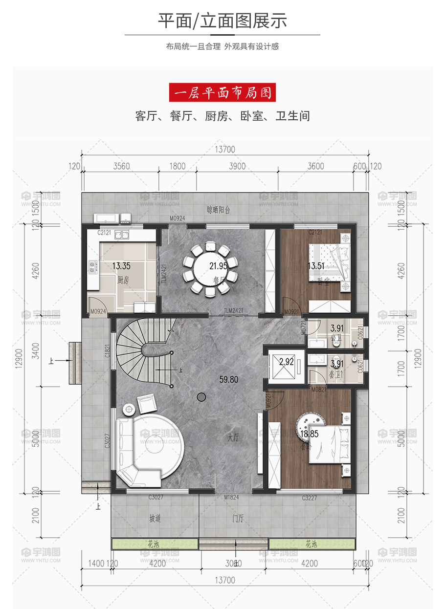 210平三層現(xiàn)代風(fēng)格別墅圖紙帶復(fù)式客廳