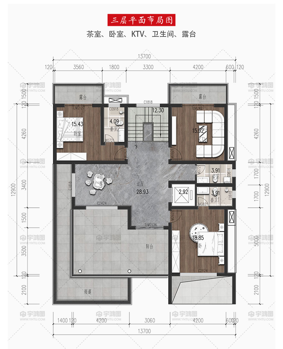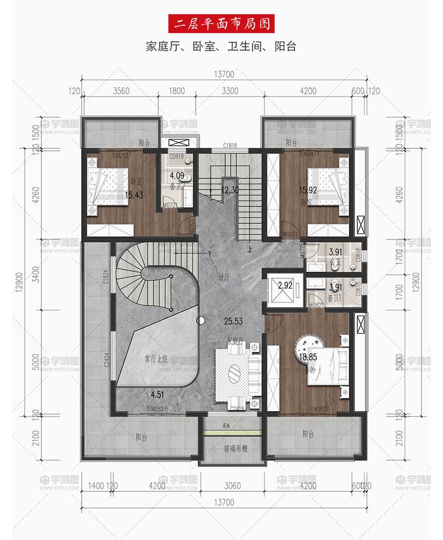 成品圖紙>210平三層現(xiàn)代風(fēng)格別墅圖紙帶復(fù)式客廳