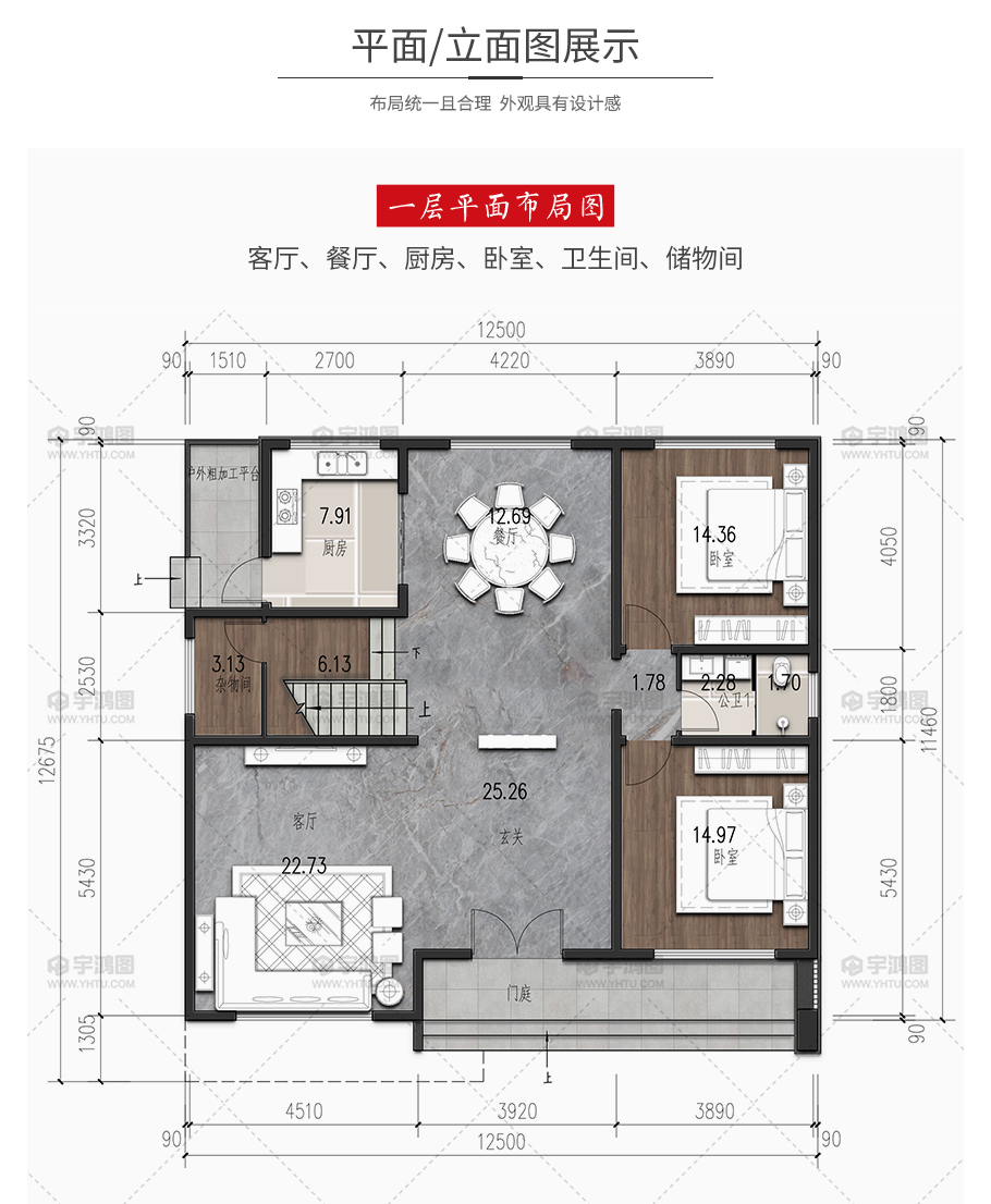 | 開(kāi)間:12.5米 | 進(jìn)深:12.7米 | 占地面積:154.4平方米 | 建筑面積:387平方米 |