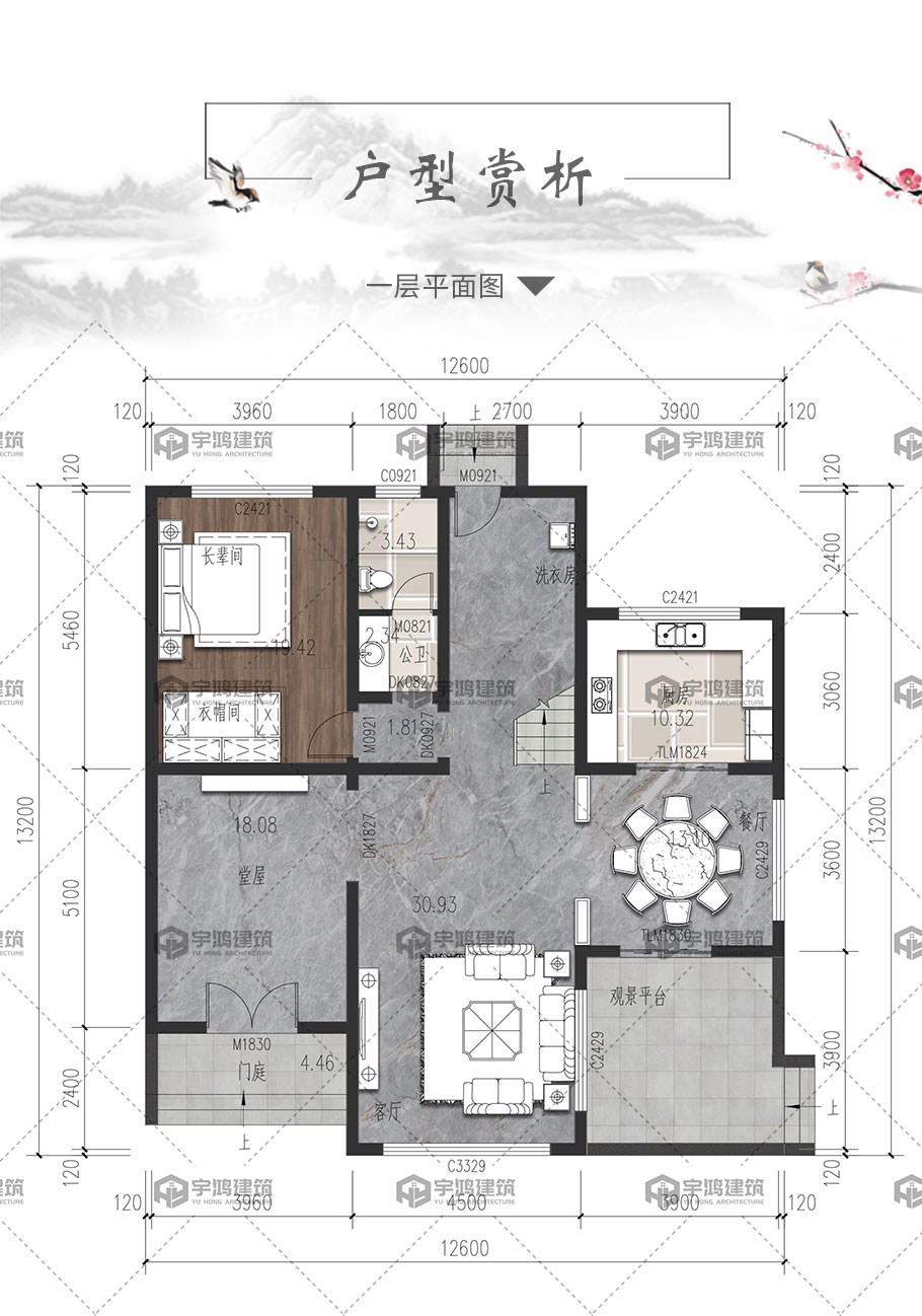 | 開(kāi)間:12.6米 | 進(jìn)深:13.2米 | 占地面積:150平方米 | 建筑面積:337.7平方米 |