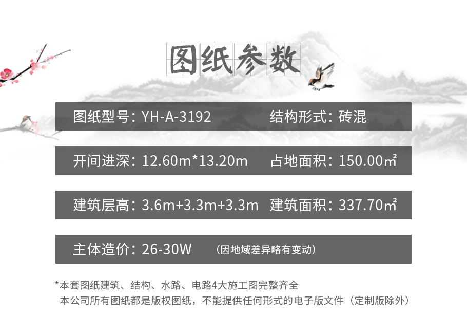 | 風(fēng)格:新中式 | 層數(shù):三層 | 結(jié)構(gòu)形式:磚混結(jié)構(gòu) | 圖紙編號(hào):YH-A-3192 |