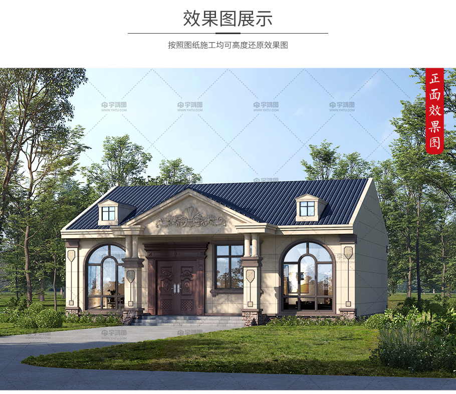 | 風格:歐式 | 層數:一層 | 結構形式:磚混結構 | 圖紙編號:YH-A-1022 |