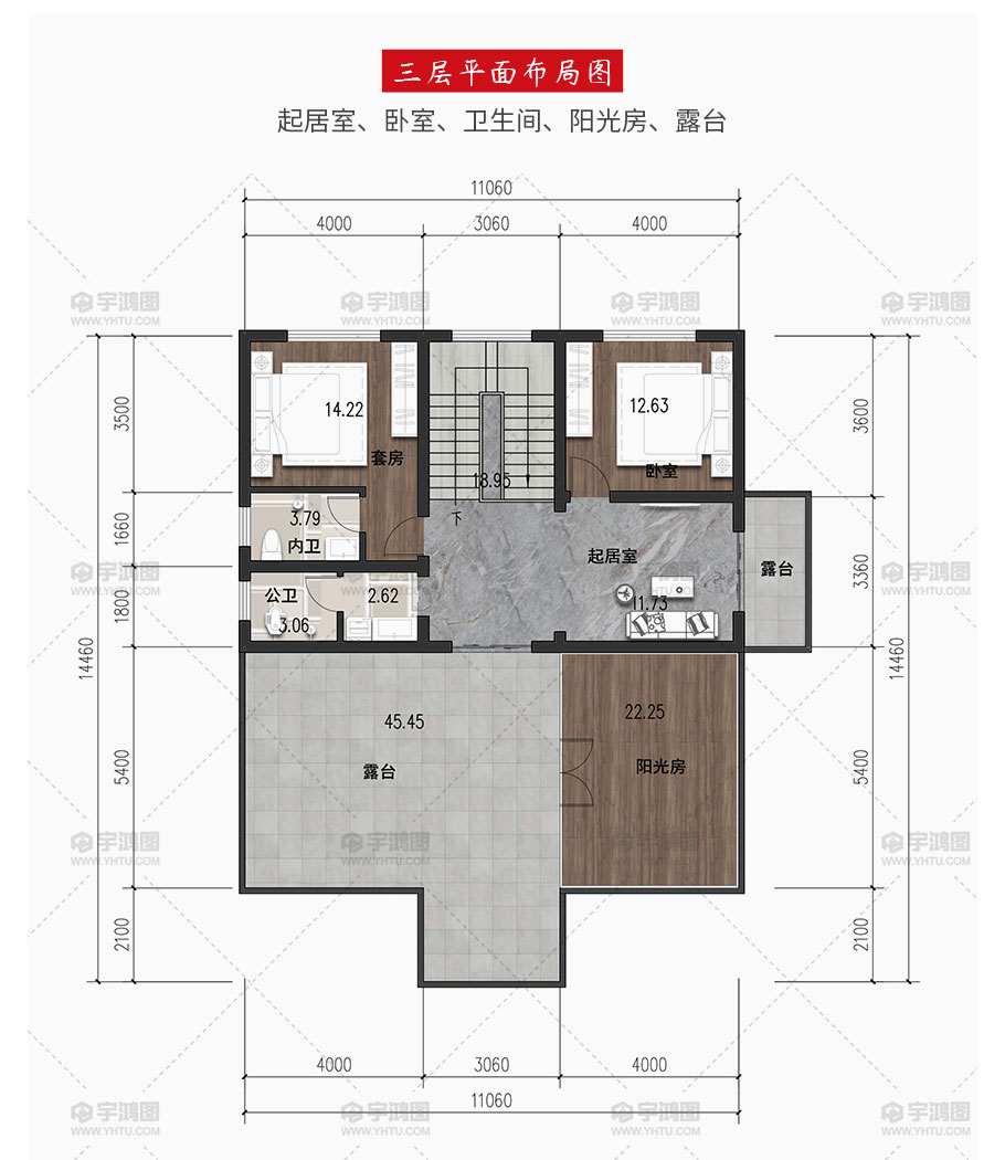 | 風格:高端定制 | 層數(shù):三層 | 結構形式:框架結構 | 圖紙編號:YH-A-3213 |