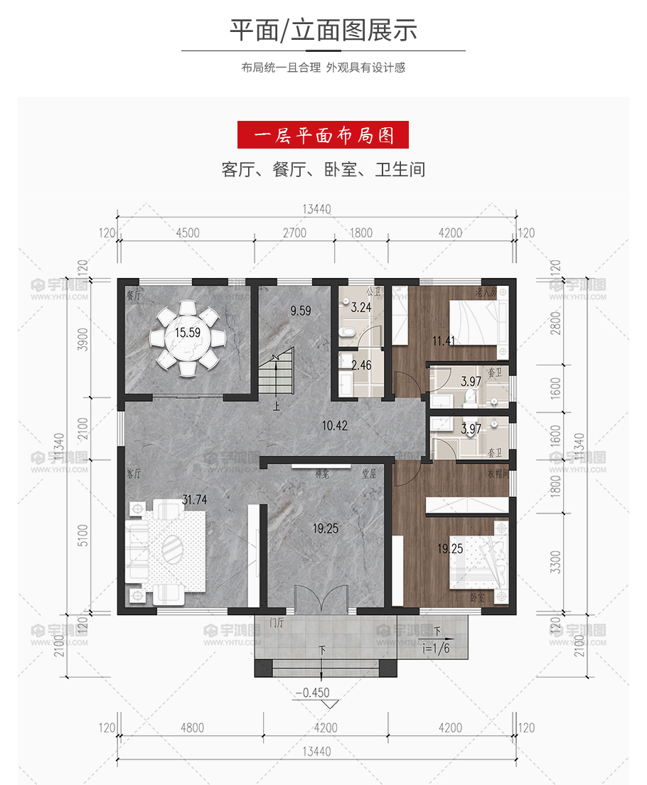 建筑立面圖:東立面圖,西立面圖,南立面圖,北立面圖,剖面圖;