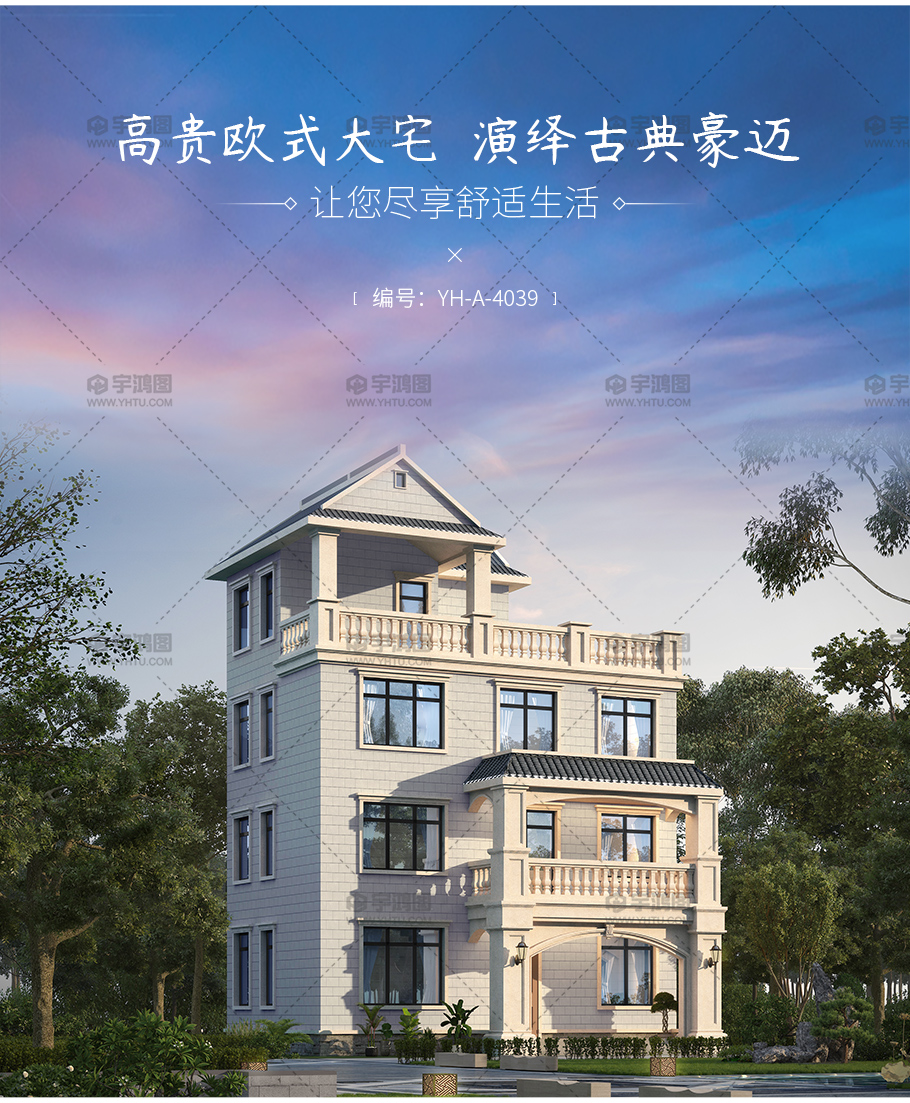 | 風格:歐式 | 層數:四層 | 結構形式:磚混結構 | 圖紙編號:YH-A-4039 |