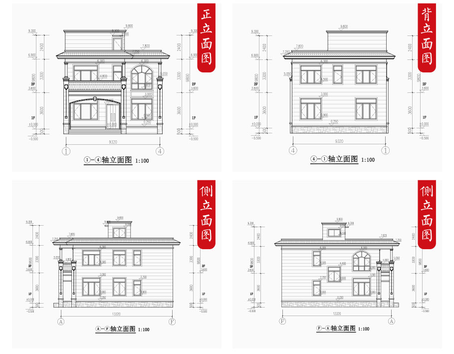 | 建筑圖: | 建筑平面圖:一層平面圖,二層平面圖; 建筑立面圖:東立面圖,西立面圖,南立面圖,北立面圖,剖面圖; 大樣圖:樓梯詳圖,細部大樣,門窗大樣 |